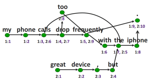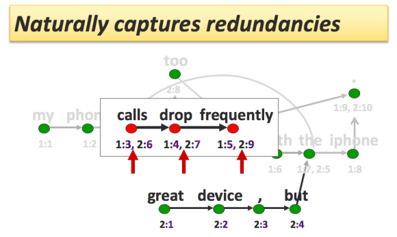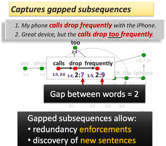 Another property the graph has is that it can handle gaps between words, which helps us see the redundancy and allows us to discover new sentences.