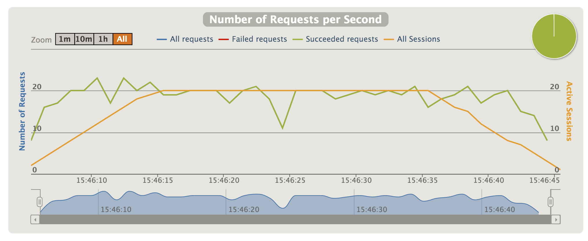 For this test, we’ll run with 20 concurrent users, ramping up over 10 seconds, for the 30 second duration of our test:
