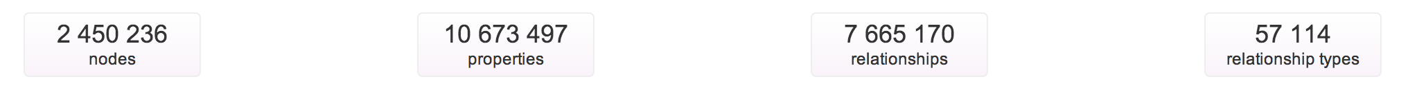 Once it’s all set and done, we end up with about 2.5 million nodes and 7.5 million relationships: