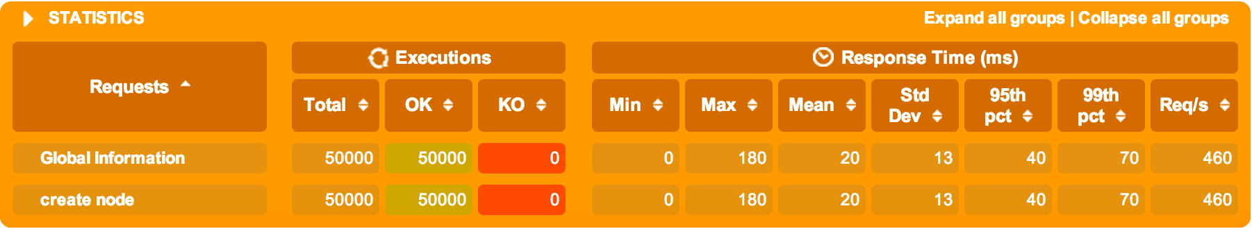 Let’s take a look at the performance numbers from Gatling. First one node at a time:
