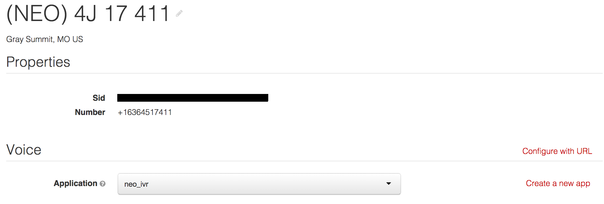 When you sign up with Twilio, you get to choose your phone number (more or less). For example, I picked +1 (636) 451-7411, which spells out +1 (neo) 4j1-7411. If you were to call this number right now (assuming I have not run out of Twilio credits) you’ll connect to my IVR.
