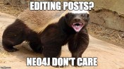 But Neo4j doesn’t care because we don’t do that. Every post is picked up on a users timeline in real time, so if it gets edited, everyone seeing their timeline from then on will see the new version of the post. That is a huge advantage Neo4j has over other database systems when building social networks or any kind of subgraph generated content.