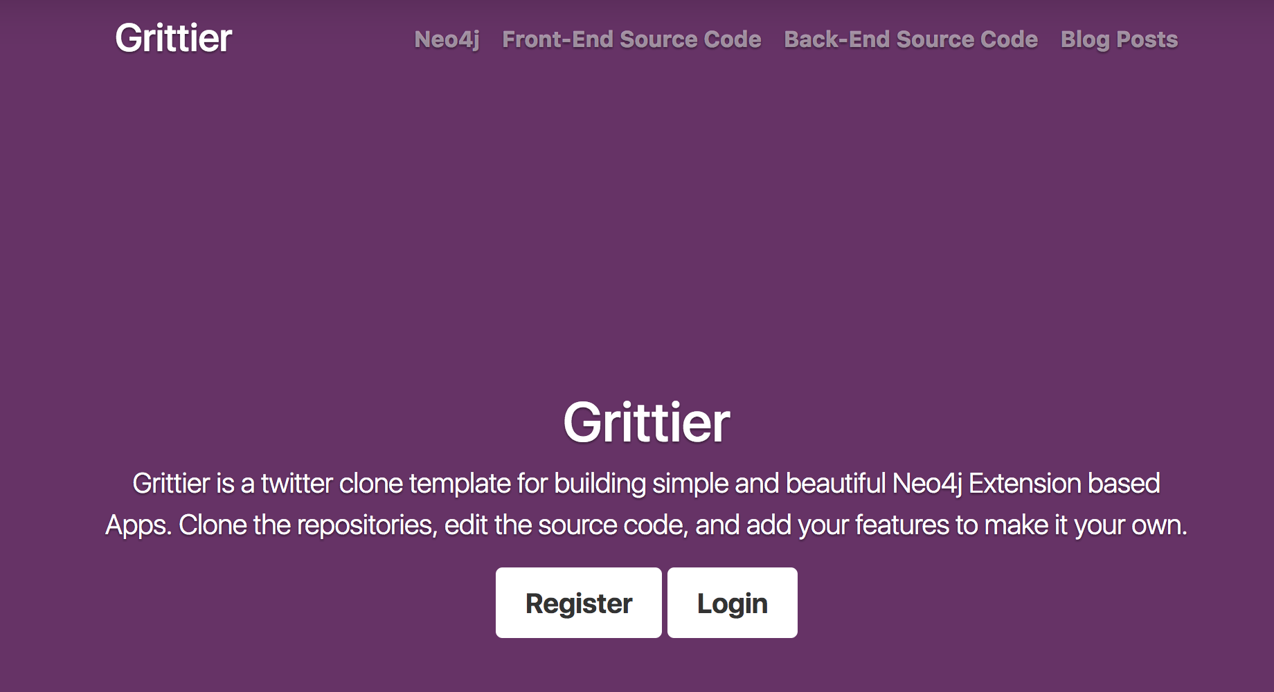 I’ve added a Register and Login button. Since we need an account before we can log on to the system, let’s start there with a new route: