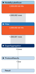 Let’s see what’s going on by creating a small version of his graph. We will create 1M nodes of LabelA, then 1M nodes with both LabelA and LabelB, and then 1M nodes with just Label B: