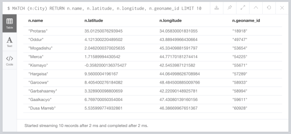 Now we can add spatial capabilities. We start by creating an index on the currently undefined “location” property of the City nodes.