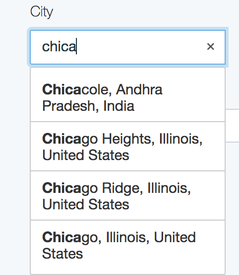 Once we hook this into the UI using something like jQuery Typeahead search, we get a pretty dropdown: