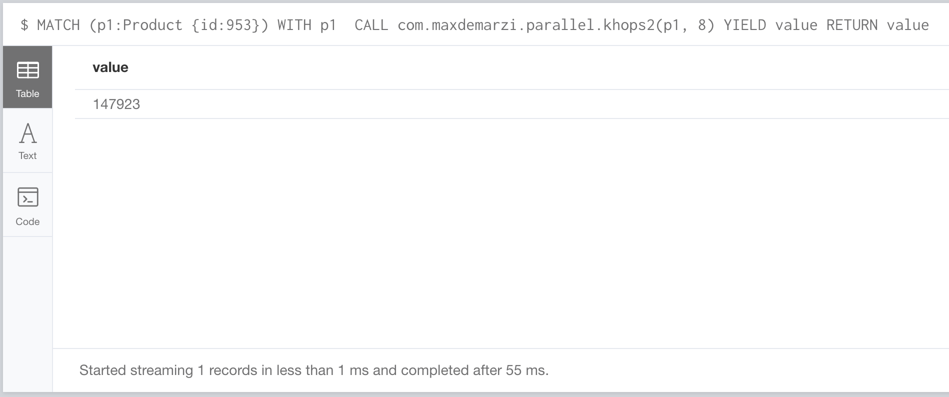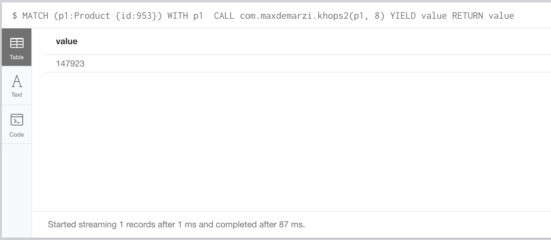 CALL com.maxdemarzi.khops2(p1, 8) YIELD value RETURN value
