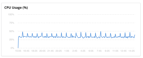 That’s a negative as well. It’s completely flat. Ok, so memory seems fine, what about CPU? We saw the query times were super fast, but could they maybe have too many of them coming in at the same time? Take a look: