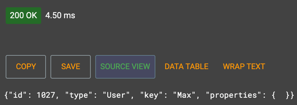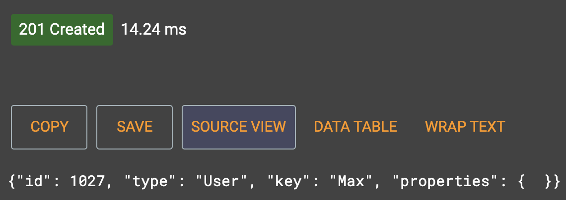 Exactly what we expected. The node was created, we get a 201 status code and node as a JSON object. Now let’s try to get it back from the server using GET: