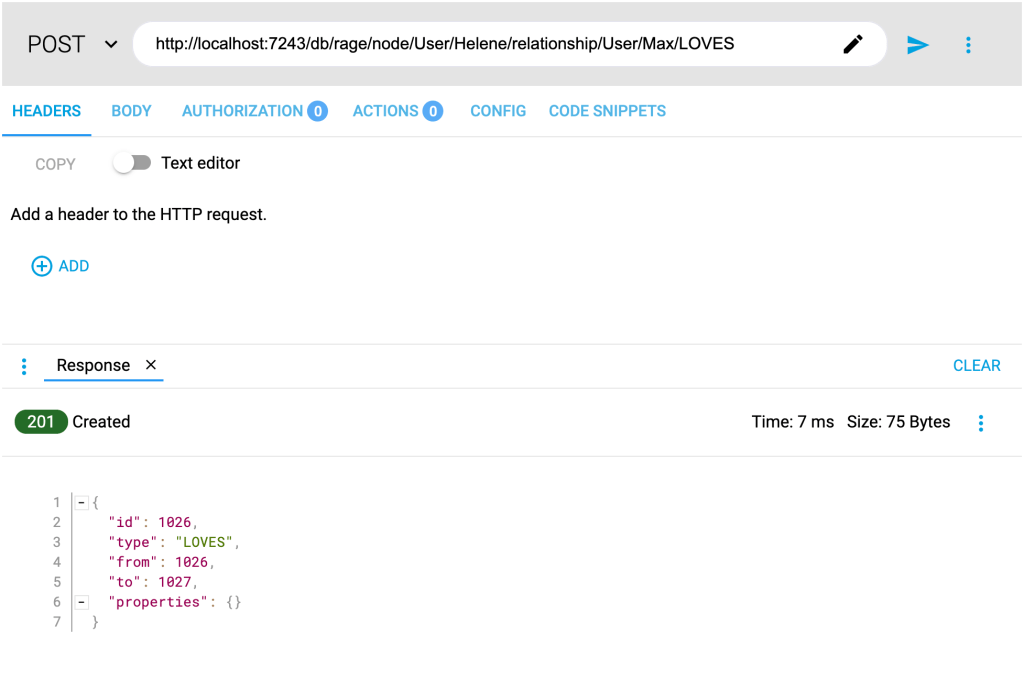 If that sounded confusing… just wait until we get to the hardest part of the entire codebase. Deleting a node. Because you see you can’t just delete a node, you have to delete all of its relationships as well otherwise you end up with “half edges” and that’s a big no-no in graph databases. I am getting ahead of myself however. Let’s test our functionality by creating two nodes and a relationship between them. First let’s create me: