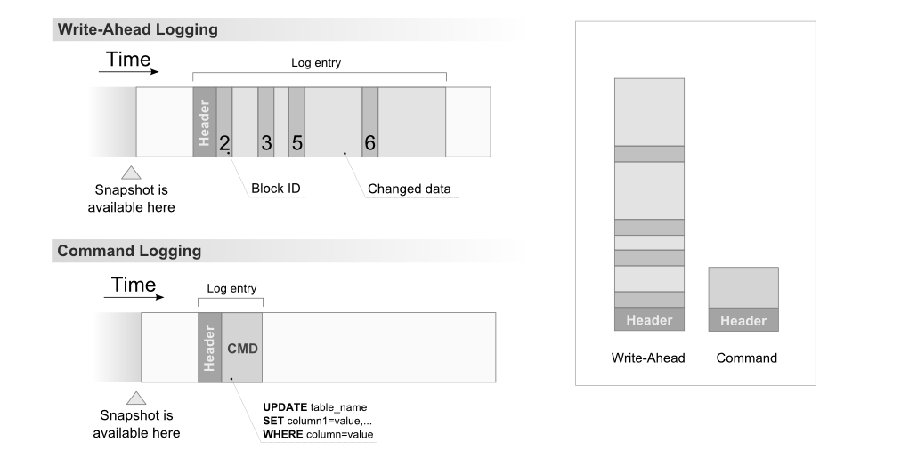 - Command Logging – the idea that only the Command used to produce the state should be logged.