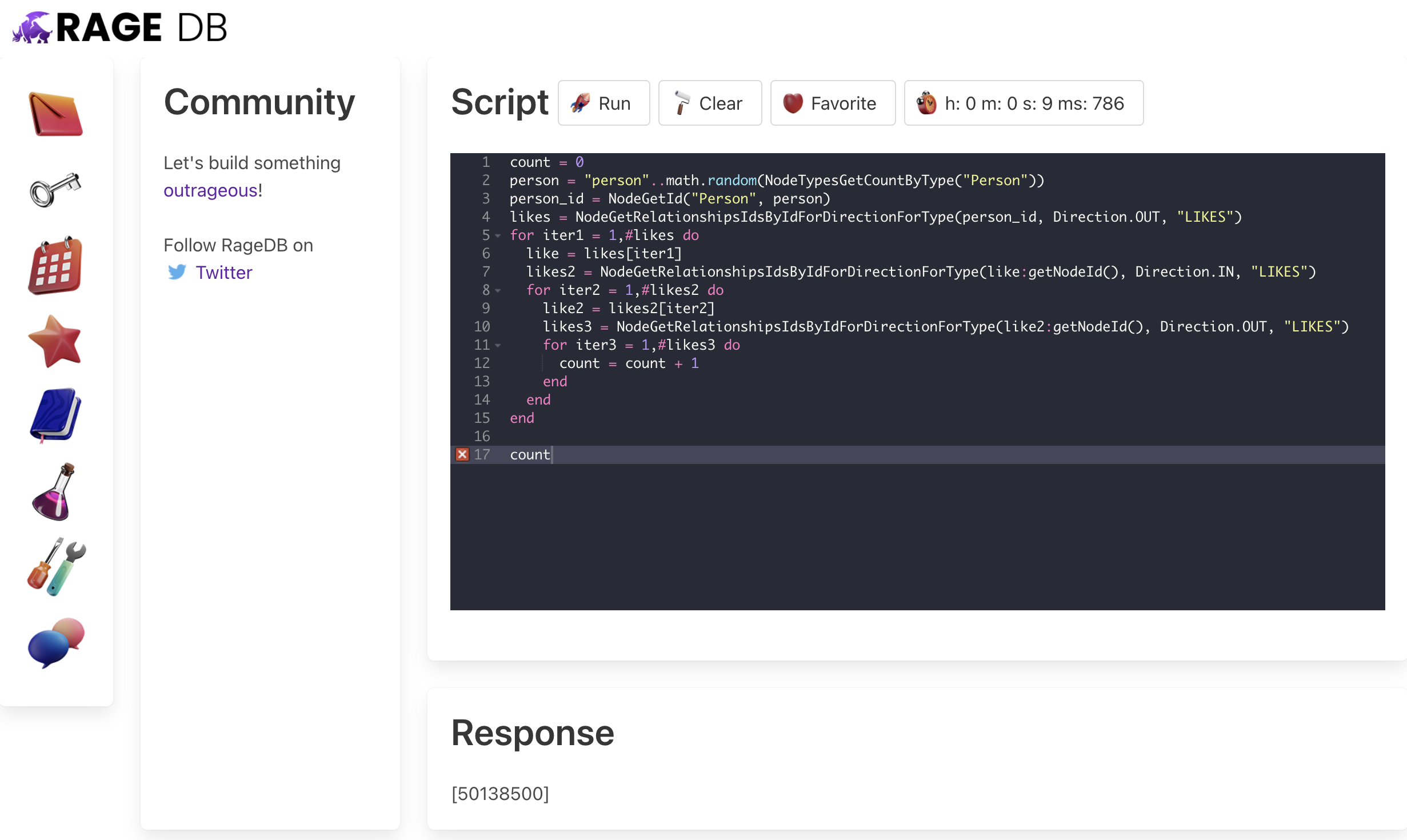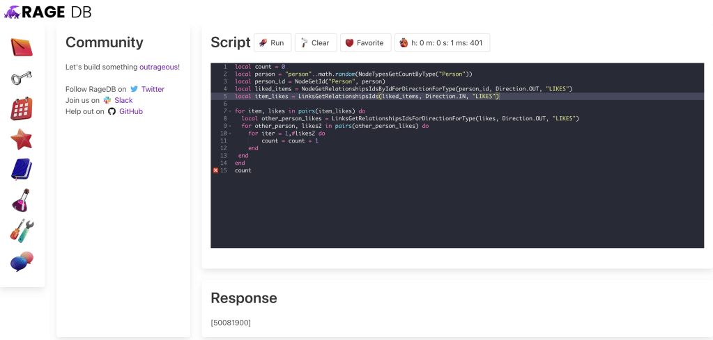 How can we improve on this? Maybe we need to move more of the work to happen in the back-end and less on the front-end? Maybe we need a Traversal API? One that can do Bulk operations? Who knows. Want to help build RageDB? Get an invite to the Slack.