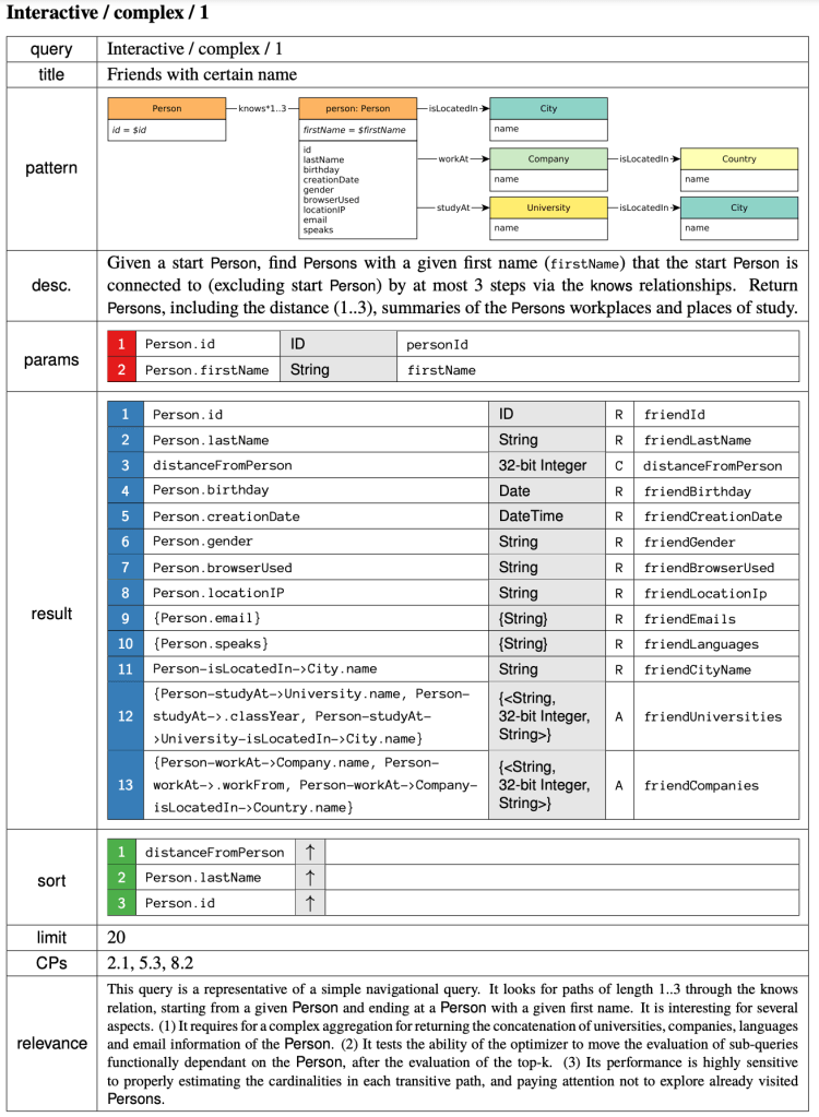 We’re going to go back to the LDBC Social Network Benchmarks and going to try a harder challenge. We’re going to write the first complex query. Take a look at the description below: