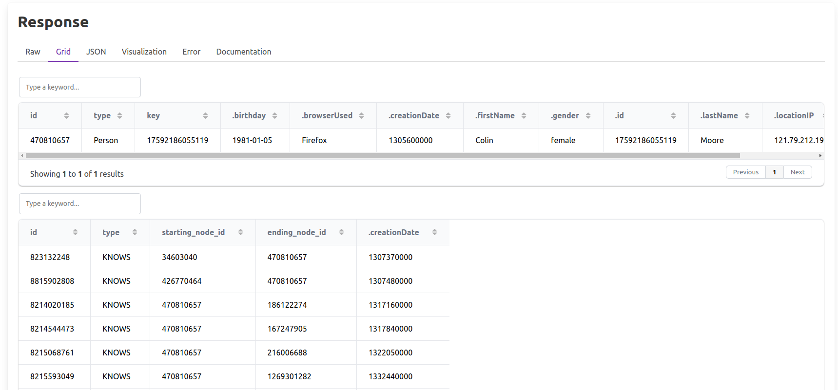 With that in place, when we run the query and head over to the “Grid” tab of the Response we can now see some great looking table results: