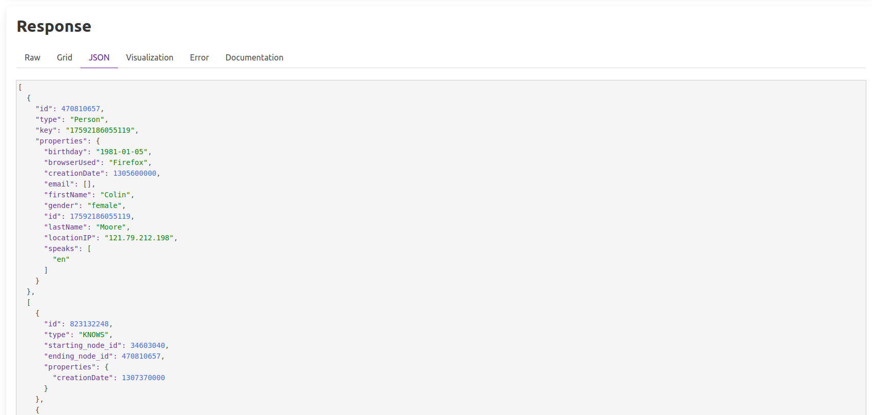 I’ve loaded up the LDBC Social Network benchmark data and have this following query to run. It gets a person, their KNOWS relationships and their neighbors: