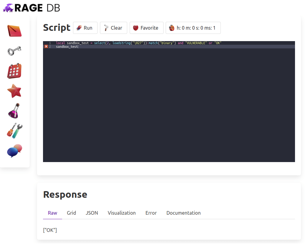 When we try running it in RageDB, we get “OK”. See for yourself: